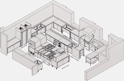 Đồ dùng và phương án thiết kế của một khu bếp công nghiệp, bếp nhà hàng